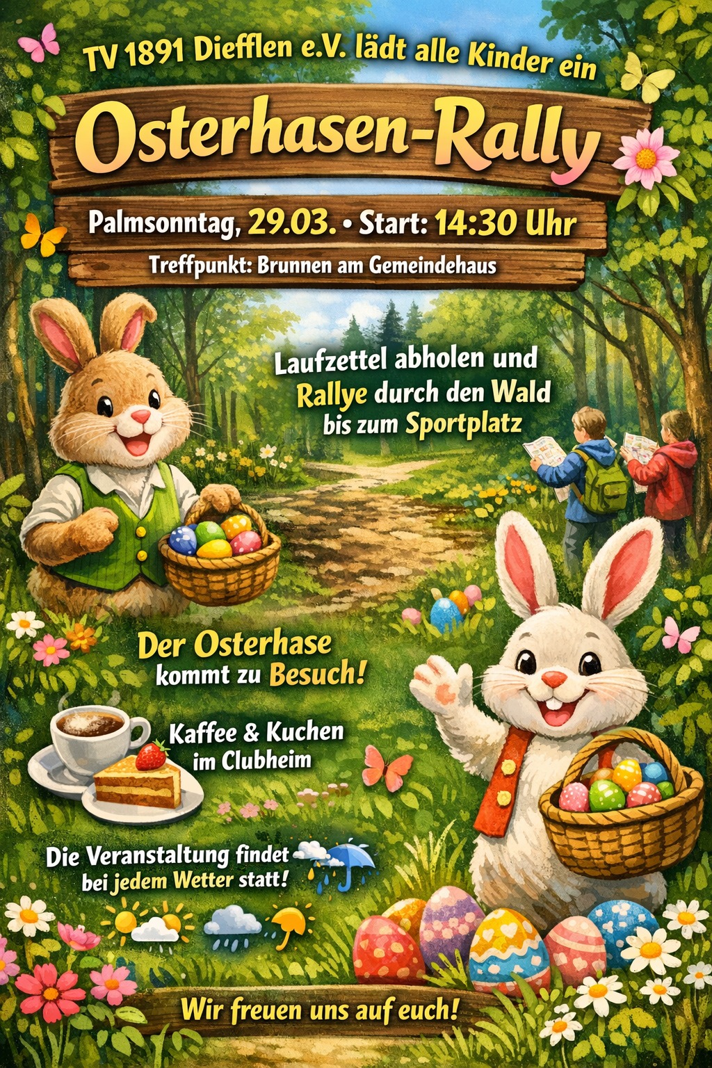Der TV 1891 Diefflen e.V. lädt alle Kinder herzlich zur Osterhasen-Rally ein!